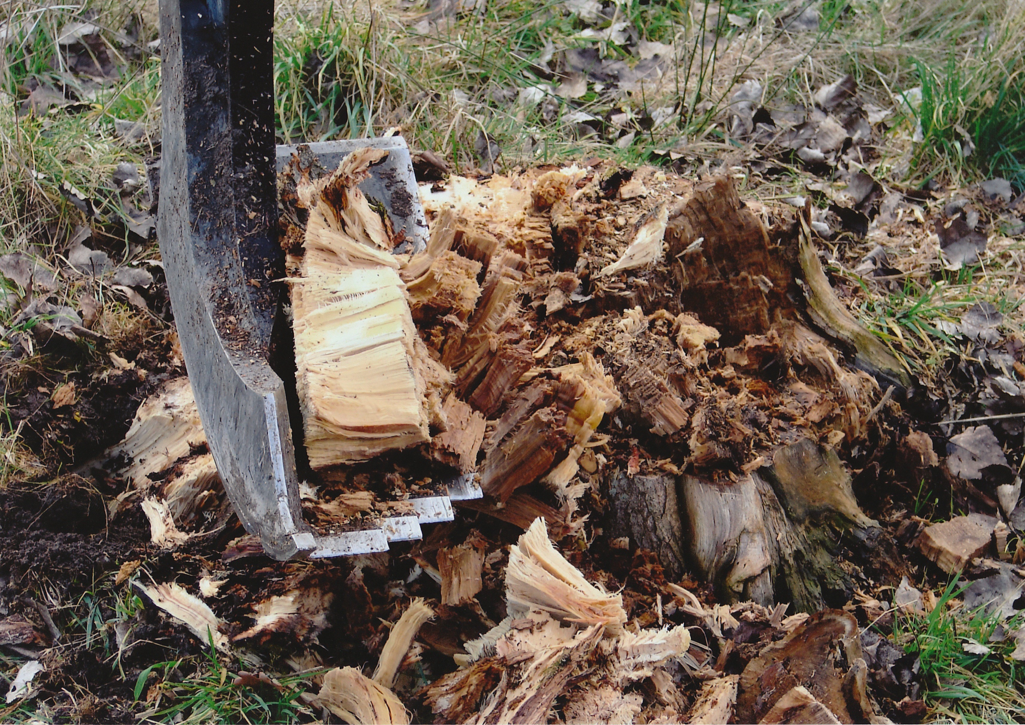 Si le broyage ne suffit pas, nous sommes équipés d'une dent Becker de dessouchage pour retirer des souches de taille conséquente.