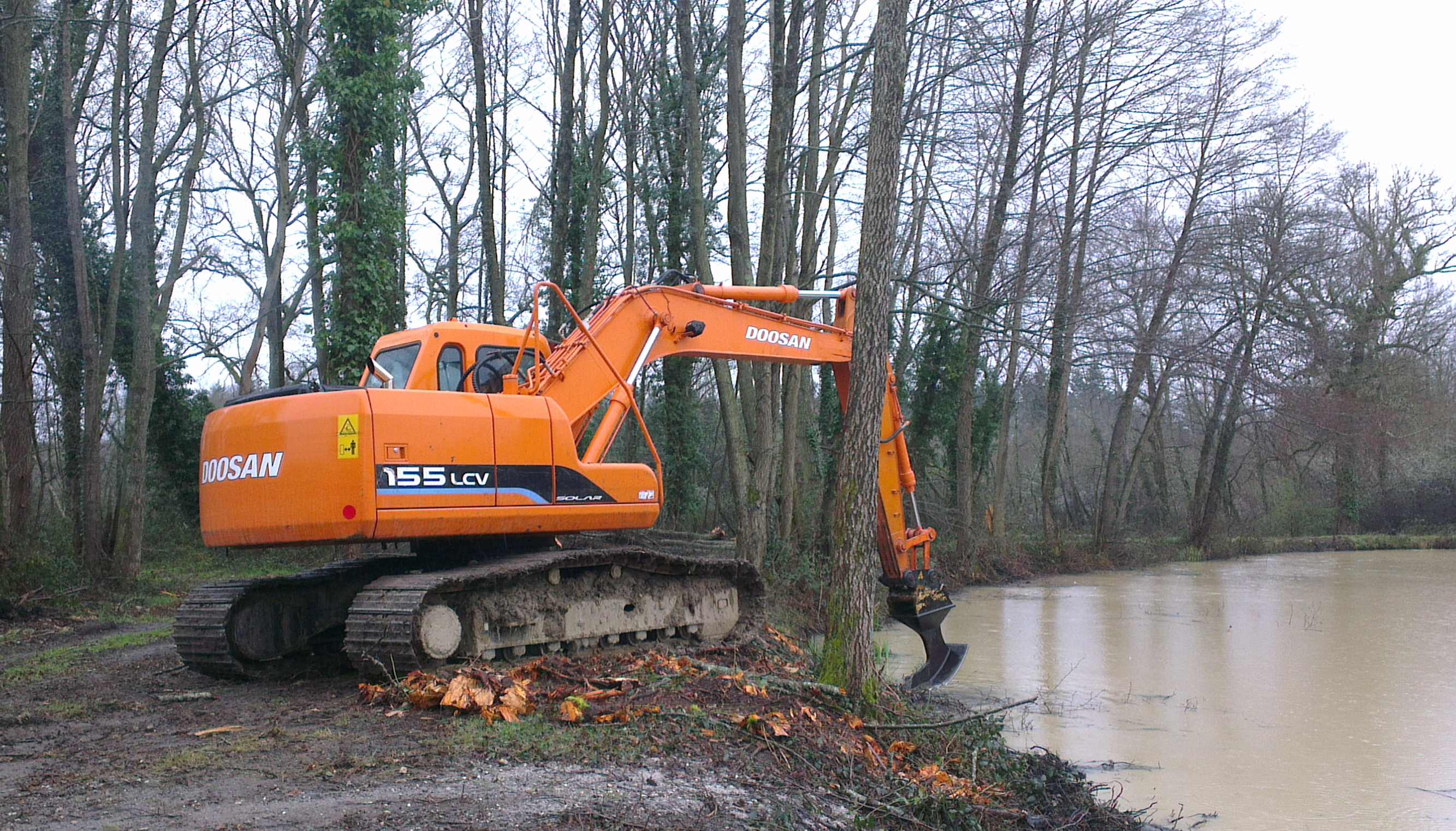 Curage de fossés ou d'étangs. Nous sommes spécialement équipés pour le travail en milieu humide. Des kilomètres de fossés et des hectares d'étangs sont nettoyés chaques années dans notre région par nos soins.