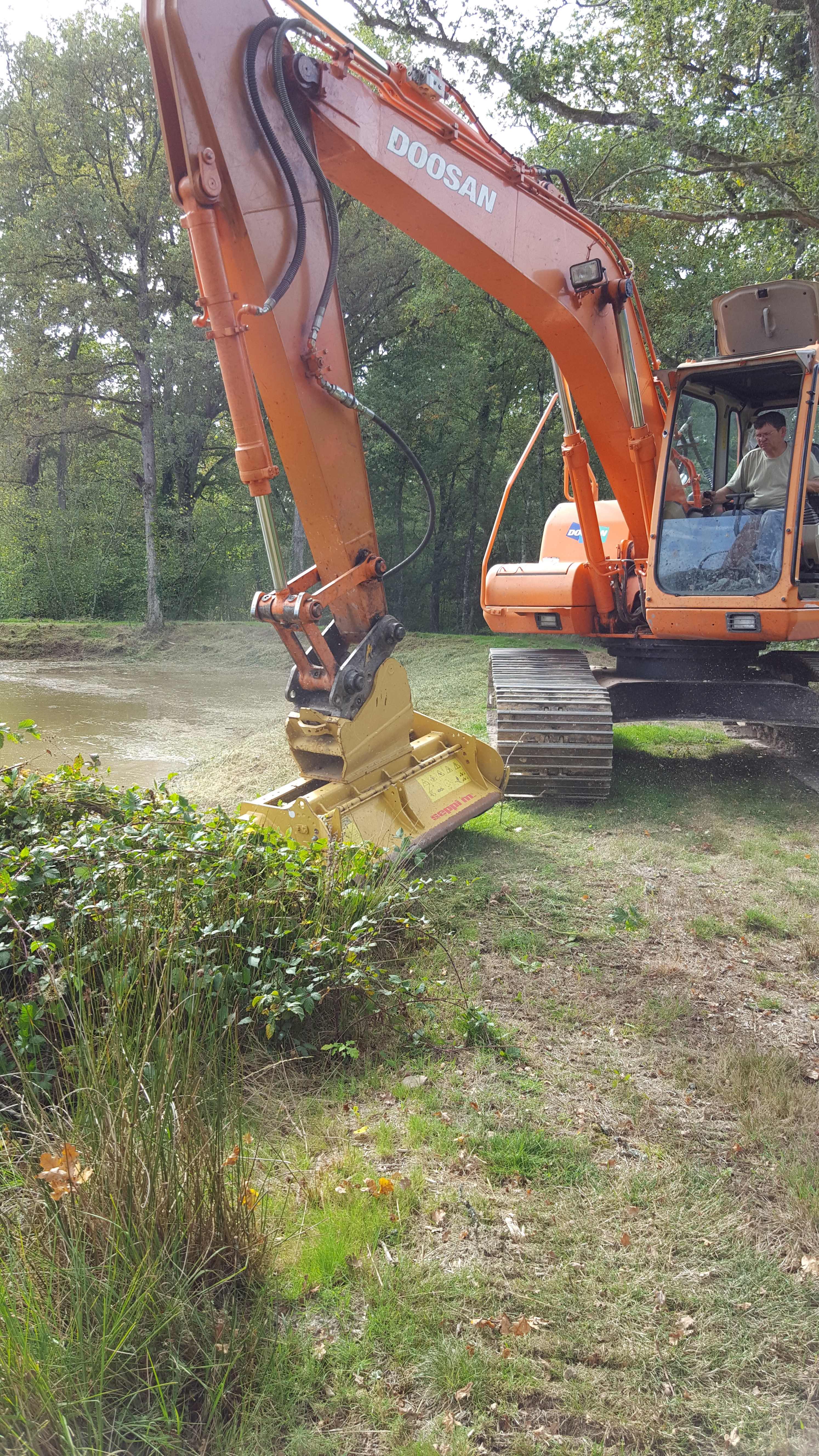 Nettoyage de friches, broyage de déchets végétaux et de souches, notre broyeur reduit en copeaux des branches allant jusqu'à 20 cm. Notre second broyeur qui équipe la pelle à chenille nous permettra de tailler des pentes et nettoyer avec precisions des endroits plus inaccessibles.
